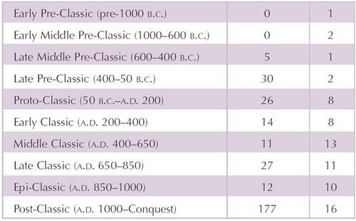 It should be noted too that the rise of Mesoamerican fortification in the archaeological record matches the introduction of this form of warfare among the Nephites by Captain Moroni in about 72 B.C. (See Alma 49:8).The first number indicates "Definitive" sites; the second is "Possible" sites: