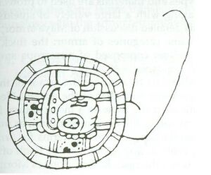 "Mayan “arm shield”, from Stela 17, Dos Pilas, Tetexbatun, Guatemala, Around A.D. 733"; from William J. Hamblin, “Armor in the Book of Mormon", p. 415; in Warfare in the Book of Mormon, edited by Stephen D. Ricks & William J. Hamblin, (Provo, Utah: Deseret Book Co. and FARMS, 1990). Note that this image post-dates the Nephite period.