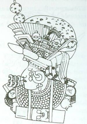 "Mayan headdress and “pectoral” [chest or breastplate] hung or attached around the neck. Stela 16, Dos Pilas, Tetexbatun, Guatemala, Around A.D. 733. William J. Hamblin, “Armor in the Book of Mormon", p. 414; in Warfare in the Book of Mormon, edited by Stephen D. Ricks & William J. Hamblin, (Provo, Utah: Deseret Book Co. and FARMS, 1990).Note that this image post-dates the Nephite period.