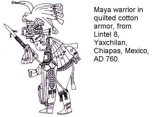 "Maya warrior in quilted cotton armor, from Lintel 8, Yaxchilan, Chiapas, Mexico, AD 760." From William J. Hamblin, “Armor in the Book of Mormon", p. 413; in Warfare in the Book of Mormon, edited by Stephen D. Ricks & William J. Hamblin, (Provo, Utah: Deseret Book Co. and FARMS, 1990).